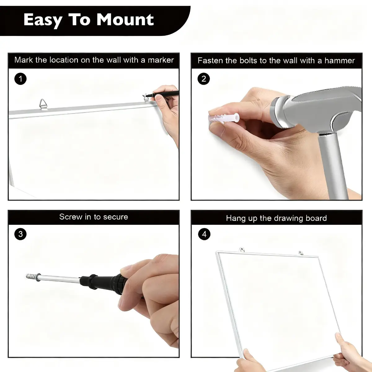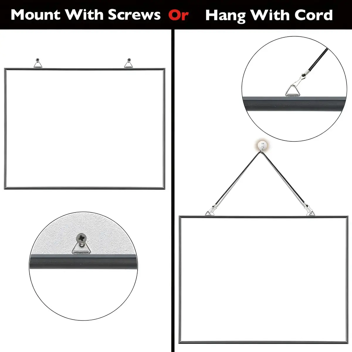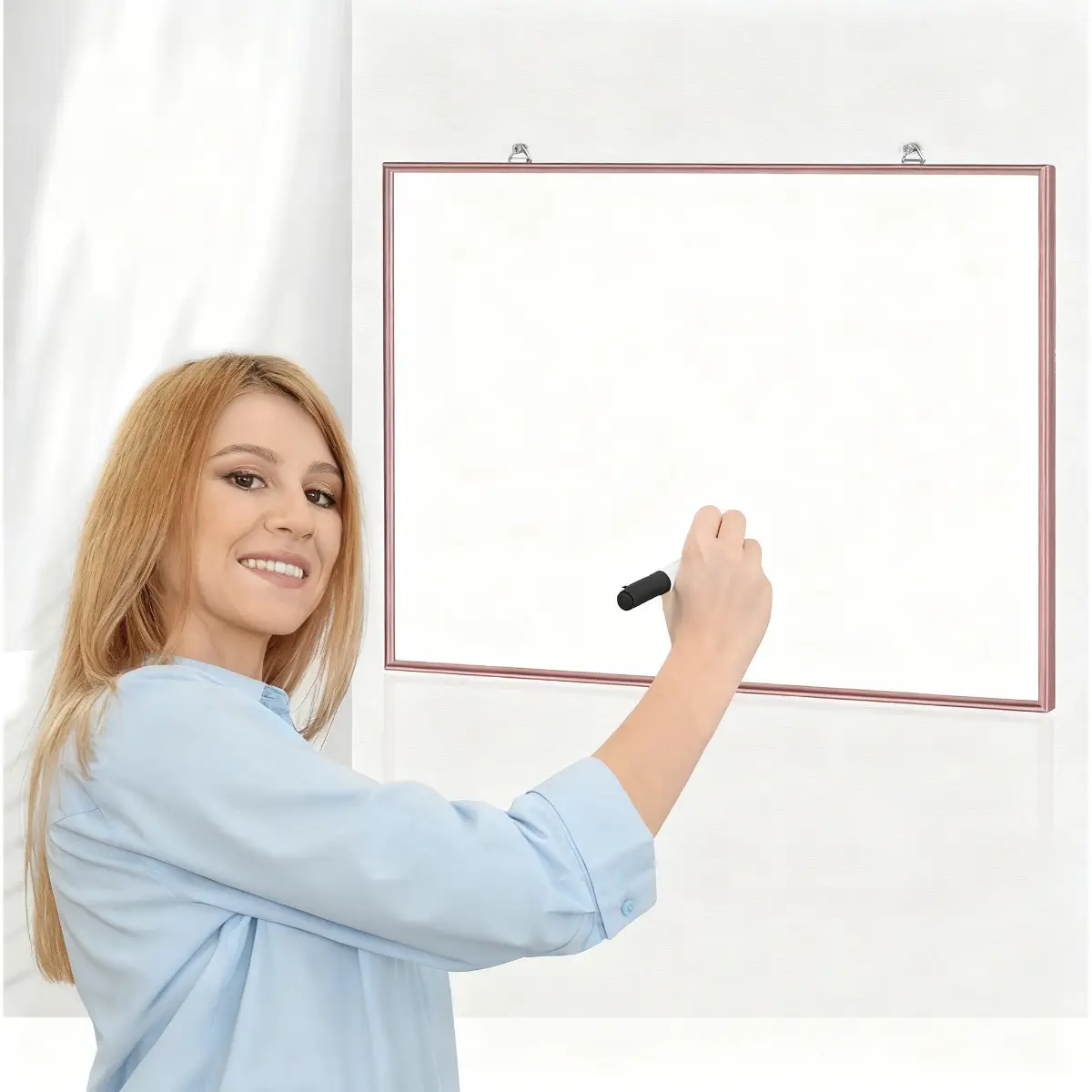 Whiteboard with Metal Frame and Hanging Hooks