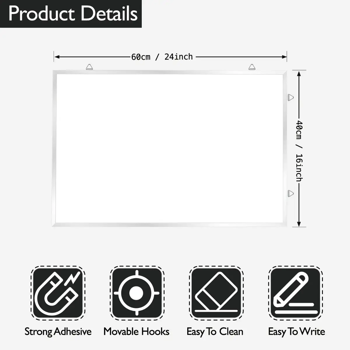 Features a smooth magnetic dry erase surface for clear writing and easy wiping. Perfect for notes, reminders, schedules and presentations.
