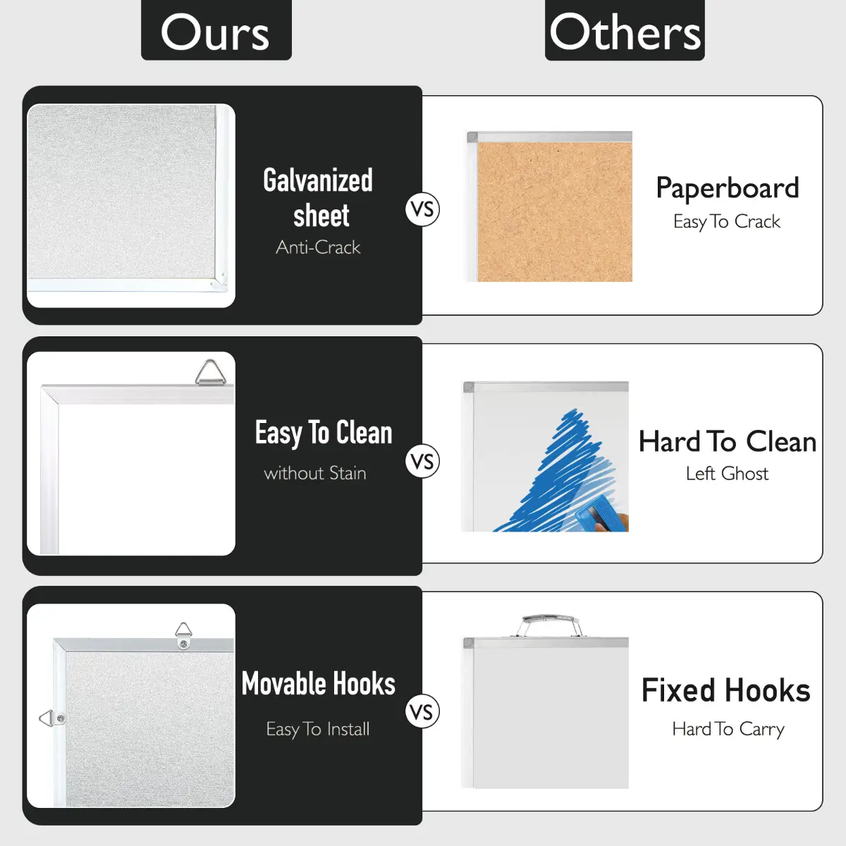A reliable writing board for daily communication and display needs. The magnetic design adds extra convenience for attaching notes and photos.