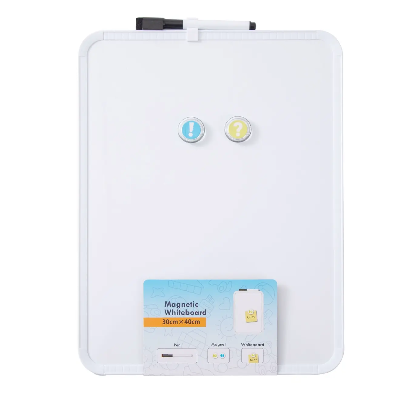 A lightweight single-sided magnetic whiteboard with a durable plastic frame. Perfect for notes, reminders, teaching, and everyday planning at home, school, or the office.
